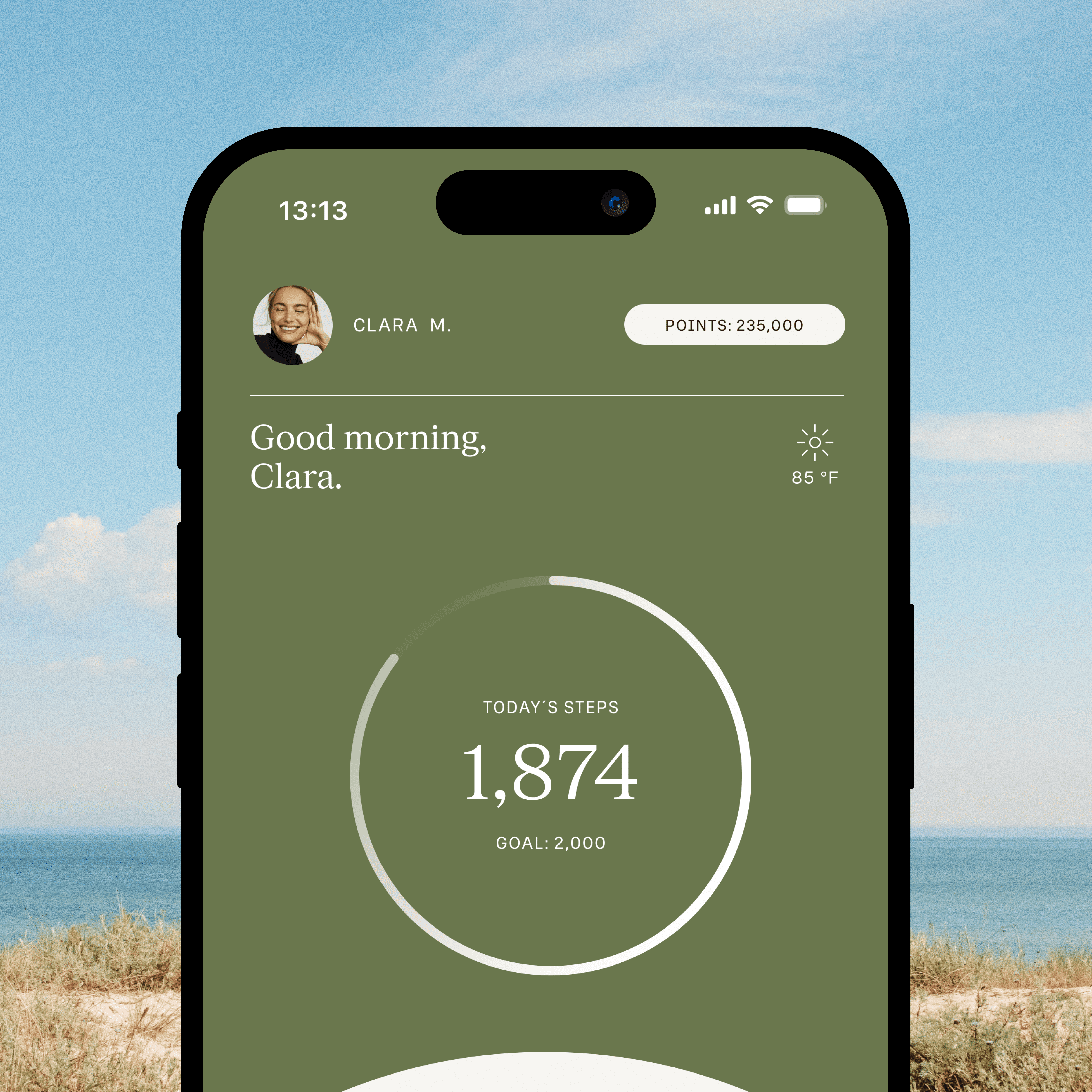 Diseñada para personas activas y conscientes de su salud, Kali busca motivar hábitos sostenibles premiando el movimiento. Desde su identidad visual, transmite energía, calidez y modernidad con una estética minimalista inspirada en los colores del atardecer californiano. Las formas suaves como arcos y semicírculos evocan fluidez y constancia, haciendo referencia a las icónicas puestas de sol de California.